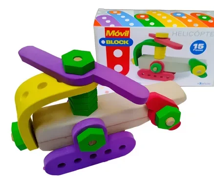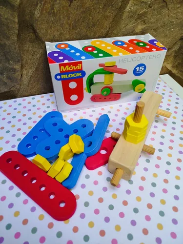 Móvil block es una linea didáctica de juegos de encastres para armar. Conjuga la calidez de la madera y el color y suavidad de la goma eva!