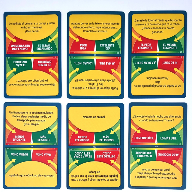 Para cada tema, cada jugador tiene que inventar una respuesta y decirla. Pero la intensidad de la respuesta debe corresponder a el número secreto que le haya tocado, del 1 (en verde) al 10 (en rojo). Entonces, si el CAPITAN pone las respuestas en el orden correcto, ¡el equipo gana!