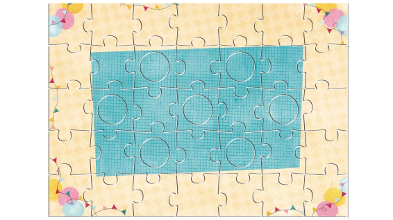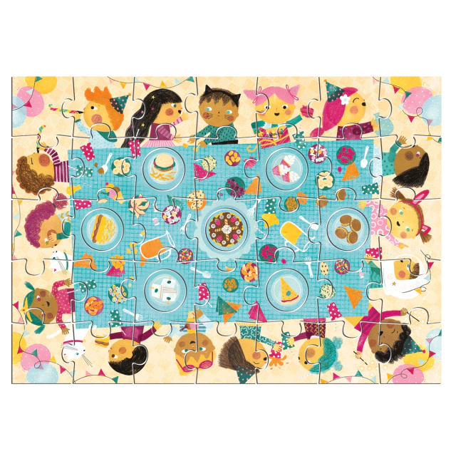 Este es un Rompecabezas de 35 piezas + 7 piezas redondas, para armar una Super Mesa de Cumple de 50x70cm.